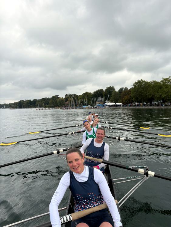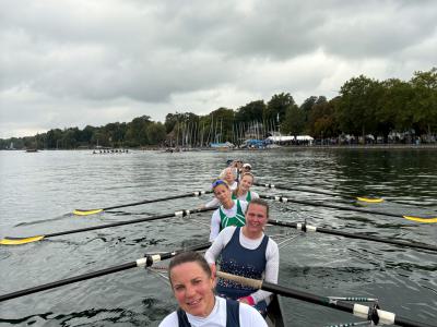 Die SRC-Mastersfrauen, die im Frühjahr in Passau eine Medaille errungen hatten, hatten über den Sommer regelmäßig im Vierer ohne trainiert und wurden durch zwei Ruderinnen aus Würzburg komplettiert. Im Gegensatz zum letzten Jahr war das Stammboot der Frauen, der Rote Stern Schleißheim, einsatzbereit. In letzter Minute musste das Team aber auf die Steuerfrau aus dem Verein verzichten, da diese für die zweite Abteilung doppelt gebucht war. Dafür kam aus Tutzing mit Karin Meindl eine sehr erfahrene und motivierende Steuerfrau, die die Wenden um zwei Bojen optimal nahm und einigen Anteil am tollen Ergebnis hatte.