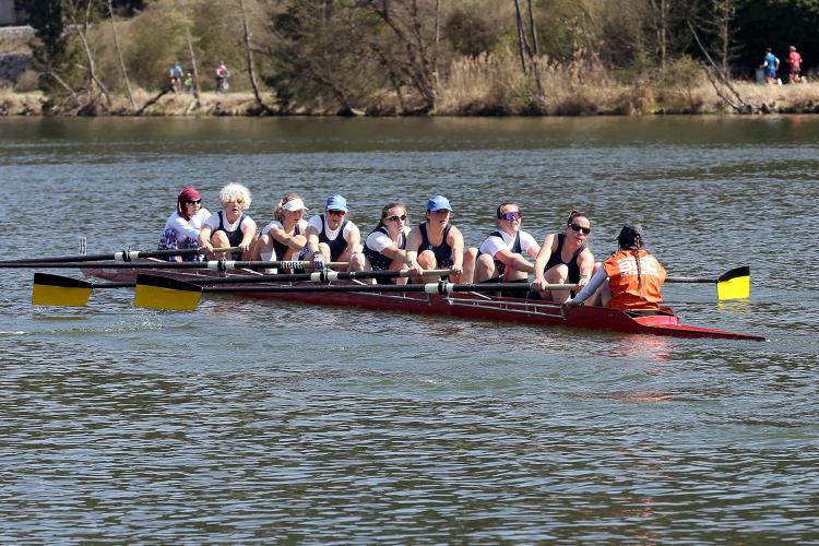 Die Damenmannschaft schaffte über die Strecke mit einer dynamischen 30er-Schlagzahl, das Boot ordentlich stabil zu beschleunigen; sogar ein kleiner heftiger Schlussspurt war auch noch drin. Schlussendlich wurde die Konkurrenz (ein Boot aus Linz, eines aus Frankfurt/Stuttgart) geschlagen und die Damen des SRC erreichten einen sehr erfreulichen ersten Platz.