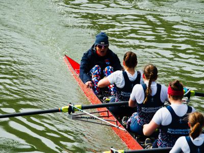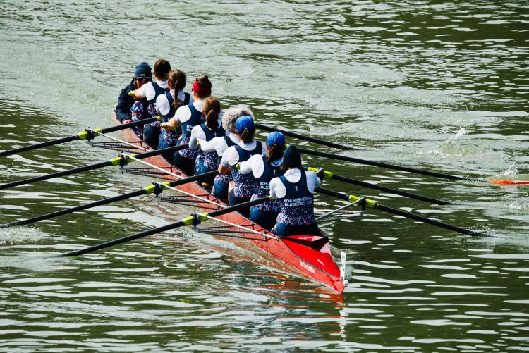 Im Rennen zeigte die Mannschaft eine beeindruckende konstante Leistung. Mit einer stabilen Schlagzahl von 29-30 über die gesamte Distanz wurde das Boot souverän durch das Wasser bewegt. Dass die Cox Box bereits früh ausfiel, brachte die Crew nicht aus dem Tritt. Im Gegenteil: die Steuerfrau und Trainerin Judith Schröder motivierte und steuerte die Mannschaft mit vollem Einsatz und kraftvoller Stimme ins Ziel. Sogar ein energischer Schlussspurt war am Ende noch drin.